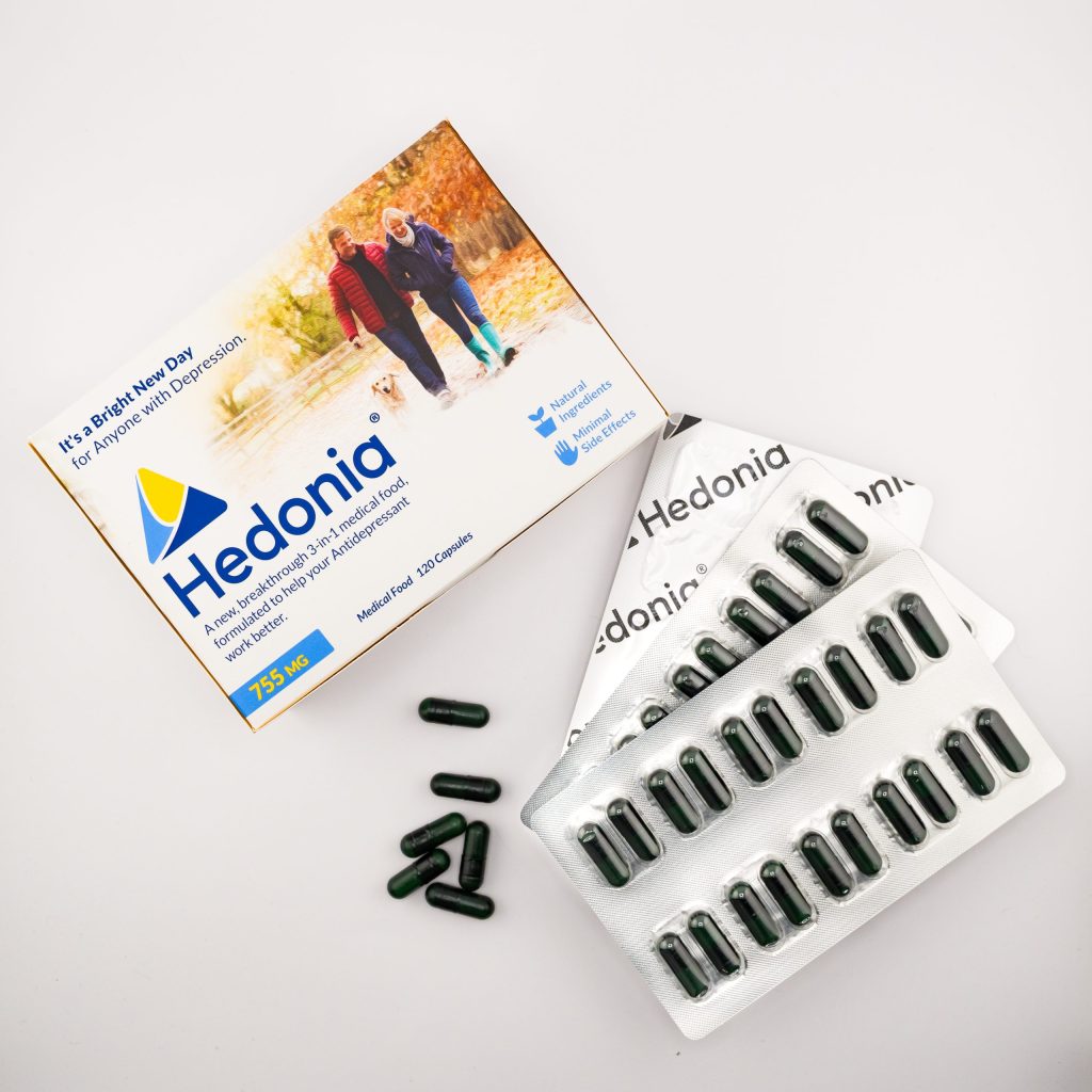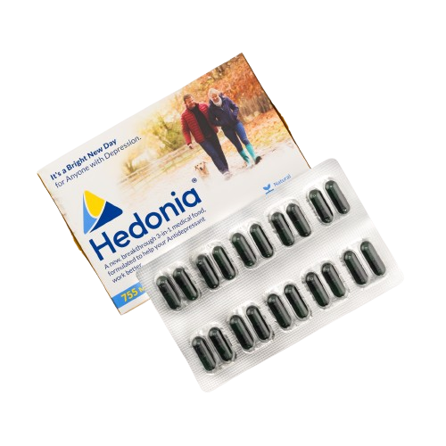 Pioneering depression management without a prescription. Hedonia uses the highest quality Pharmaceutical Grade ingredients available, setting a new standard as the only 3-in-1 patented Medical Food for people who suffer from depression.